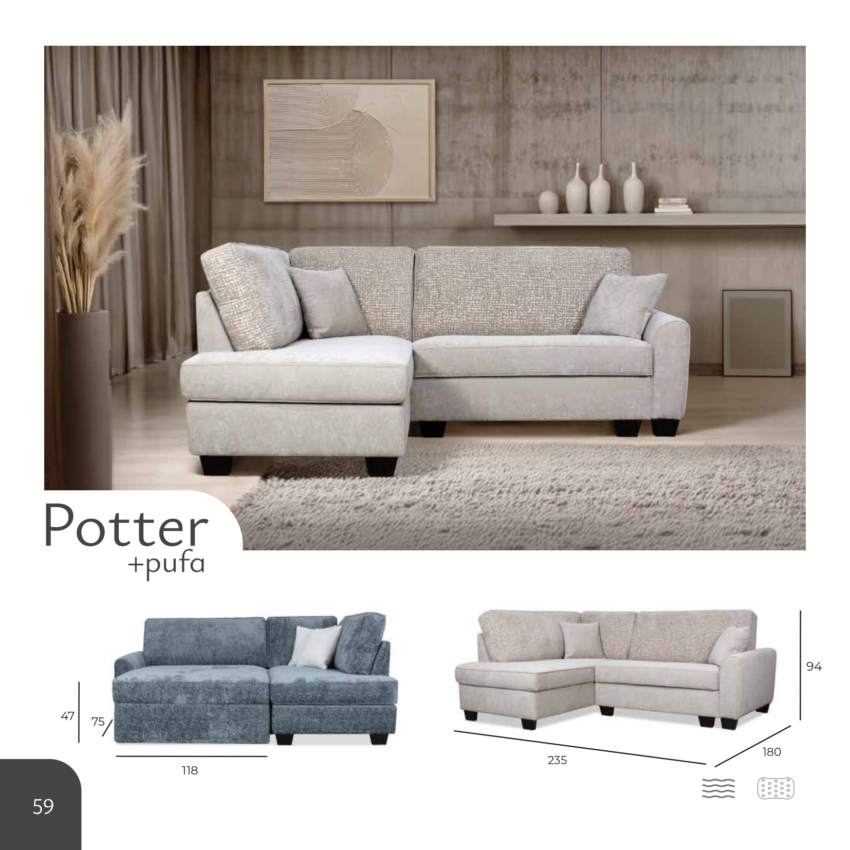 - Modern Aesthetic: With its sleek design, clean lines, and range of fabric options, the Potter + Puffa Corner Sofa Bed will seamlessly complement contemporary and minimalist home decor.
