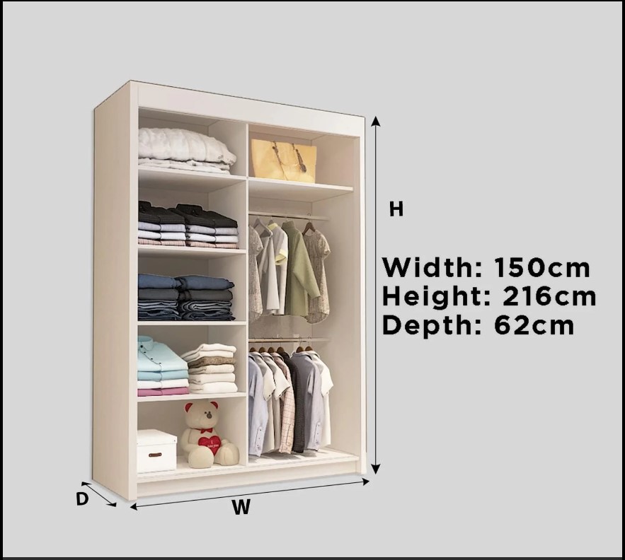 Dimensions: 150 cm (W) x 216 cm (H) x 62 cm (D)